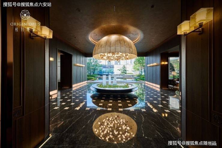 建筑由武林壹号、望庭原班团队操刀,外立面选用宝格丽酒店同款保加利亚进口维纳多奢石,搭配超白玻幕墙,形成“光幕立面”效果。园林以“四水归堂”为核,通过满月景墙、叠石水景等元素,再现江南桃源意境。归家动线融入东方对称美学,大堂采用嗅觉景观设计,分时段释放龙井茶香、檀木清香,营造沉浸式感官体验。